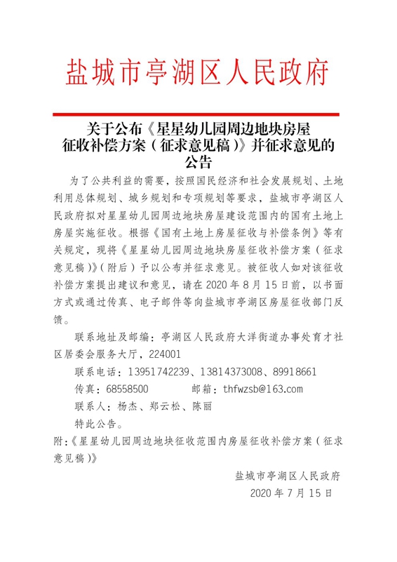 具体范围见盐城市自然资源和规划局认可的星星幼儿园周边地块项目征收红线图(附图)。