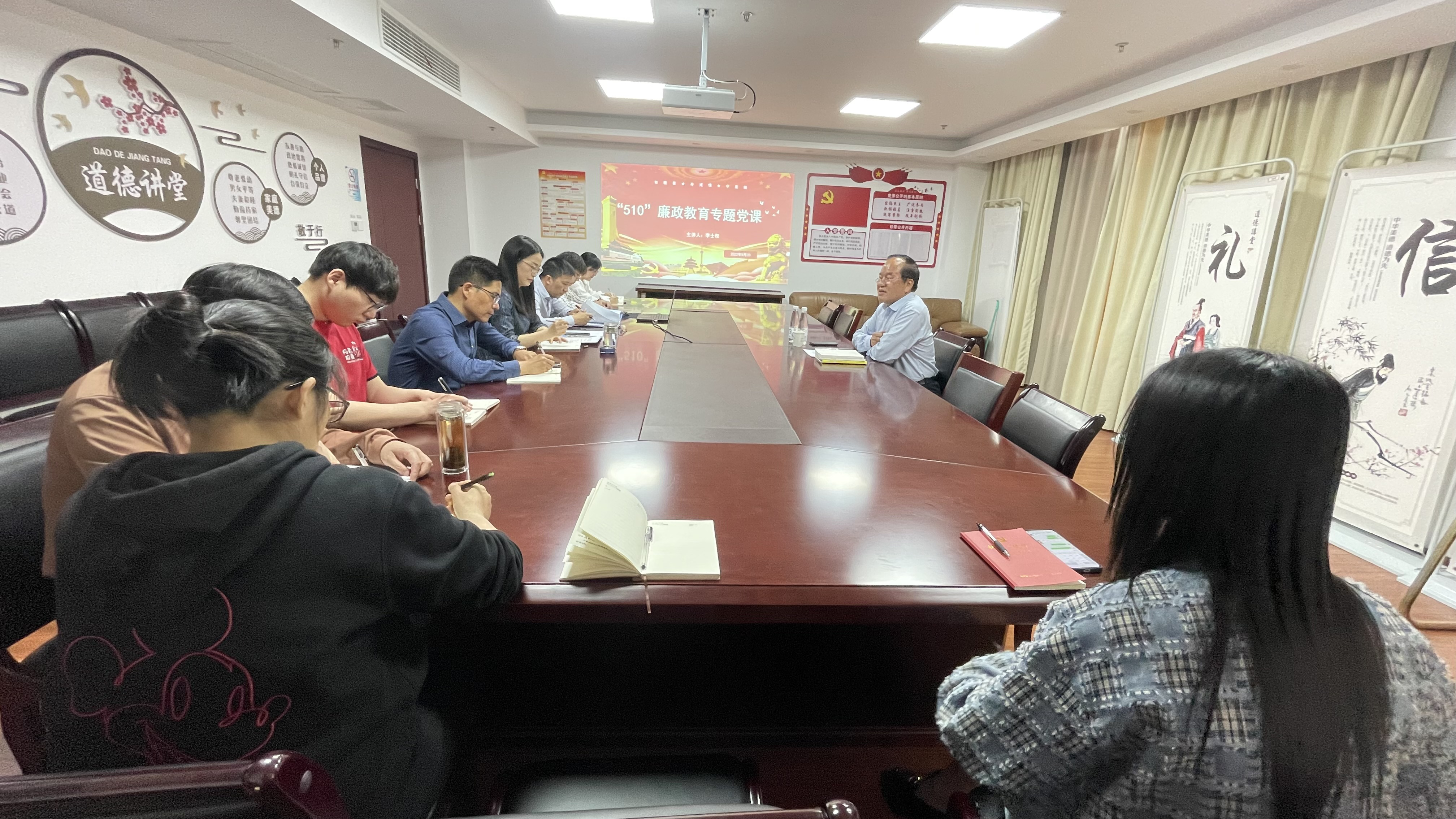 在近两个小时的党课中,李士权从“君子爱财取之有道”“消除人性关,打破关系网”等方面,深入浅出地阐述了“廉政”的重要性,并结合自身的生活和工作经历,运用寓言故事及大量事例,生动形象地指出了严守规矩、敬畏纪法、筑牢底线的重要性和必要性,使大家深受启发。课上,他针对廉政工作提出了四点要求:一是要将权力关进制度的笼子,不谋私利特权;二是把好交友关,慎交友、交益友;三是要守纪律、讲规矩、听指挥;四是要坚定理想信念,实干担当。最后,他强调,作风建设永远在路上,要以案明纪,吸取教训,才能将利刃悬在头上、警钟敲在耳边、作风融在日常、廉洁刻在心头。