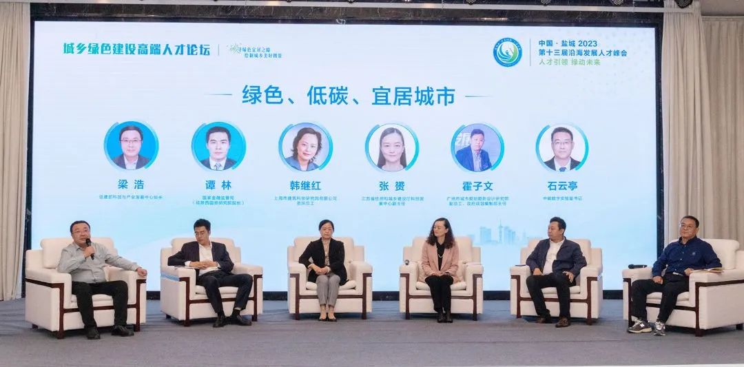 沙龙论坛由梁浩主持。论坛上,上海市建筑科学研究院有限公司总工程师韩继红,省住建厅科技发展中心副主任张赟,国家金融监管局处长(陕西国资研究院院长)谭林,广州市城市规划勘测设计研究院副总工程师、政府规划编制部主任霍子文,中碳数字实验室党委书记石云亭等,就盐城绿色宜居之城建设,进行了沙龙讨论,精彩观点不断,让与会人员受益匪浅。