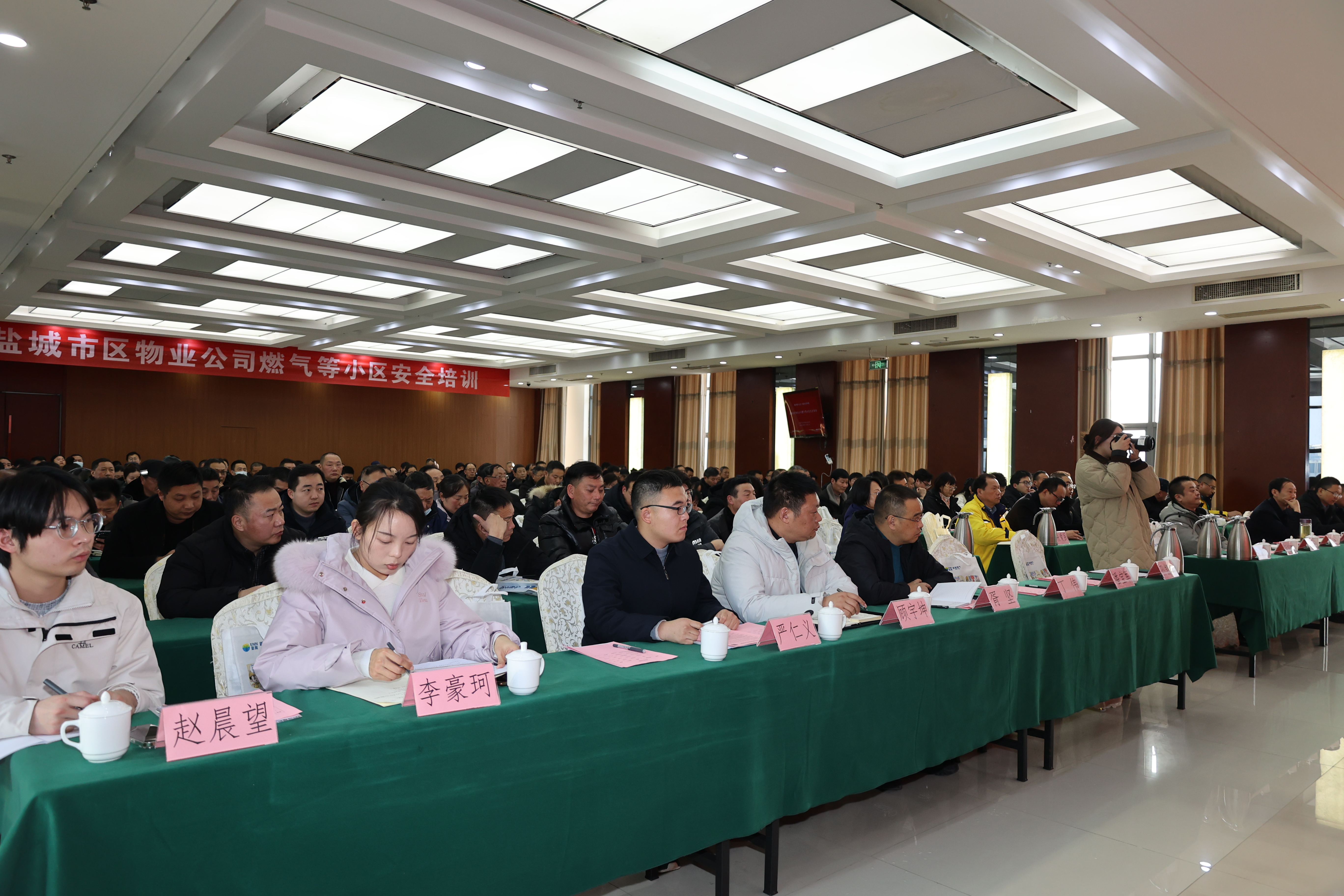 会上,盐城新奥燃气和市水务集团的安全员用详尽的典型案例,就燃气及供水安全要点作深入浅出讲解;与会物业负责人不时抬手拍照记录燃气巡检、常见隐患识别、应急处置等核心内容。大屏上真实事故的现场对比图,强烈的视觉冲击让在场每一位物业经理都屏住了呼吸。这一场让安全知识“看得见、摸得着、用得上”的沉浸式培训,为节前筑牢城市安全防线注入新的活力。