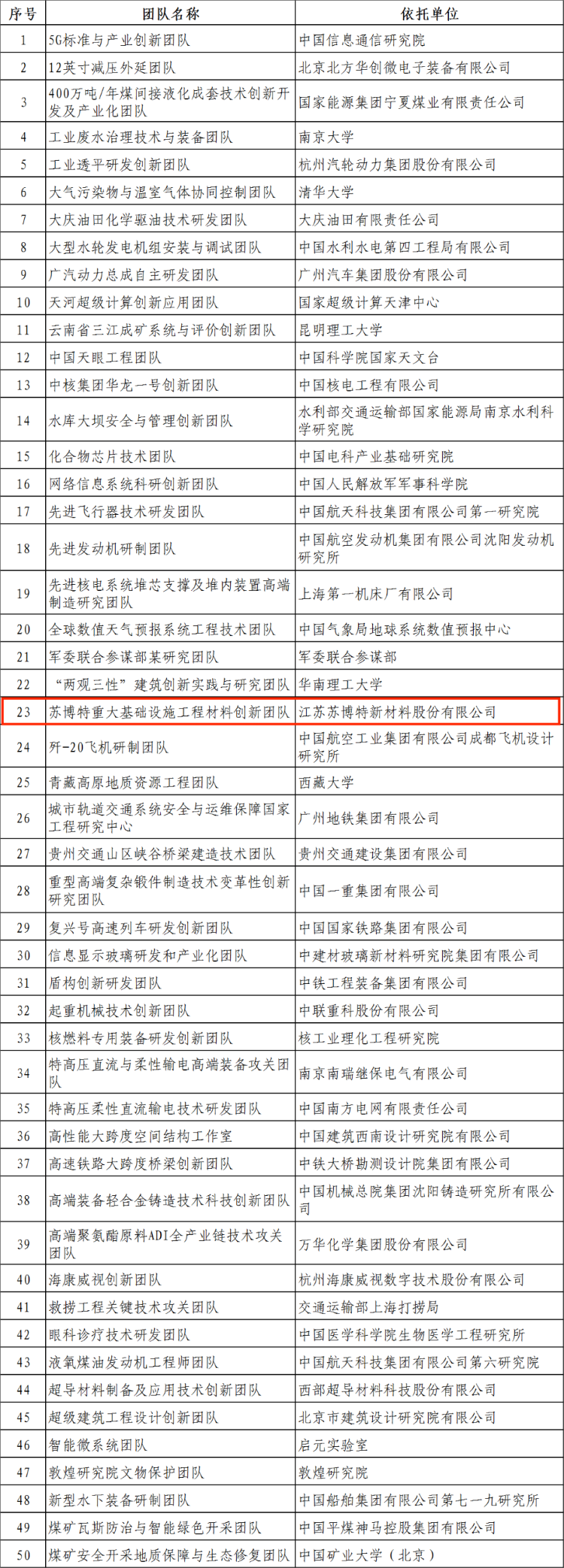 1月19日上午,首届“国家工程师奖”表彰大会在人民大会堂举行,81名个人被授予“国家卓越工程师”称号,50个团队被授予“国家卓越工程师团队”称号。其中,苏博特重大基础设施工程材料创新团队荣获“国家卓越工程师团队”表彰,为江苏省住房城乡建设行业再添一张“国家级名片”!