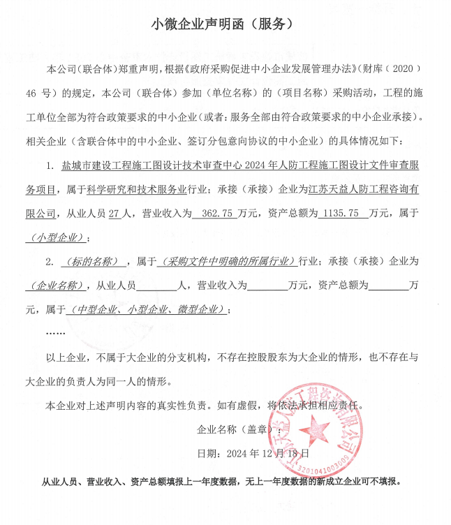 项目名称:盐城市建设工程施工图设计技术审查中心2024年人防工程施工图设计文件审查服务项目 合同履行期限:三年,具体以招标人通知为准,合同按年签订(通过中介机构服务质量评估)。 |
