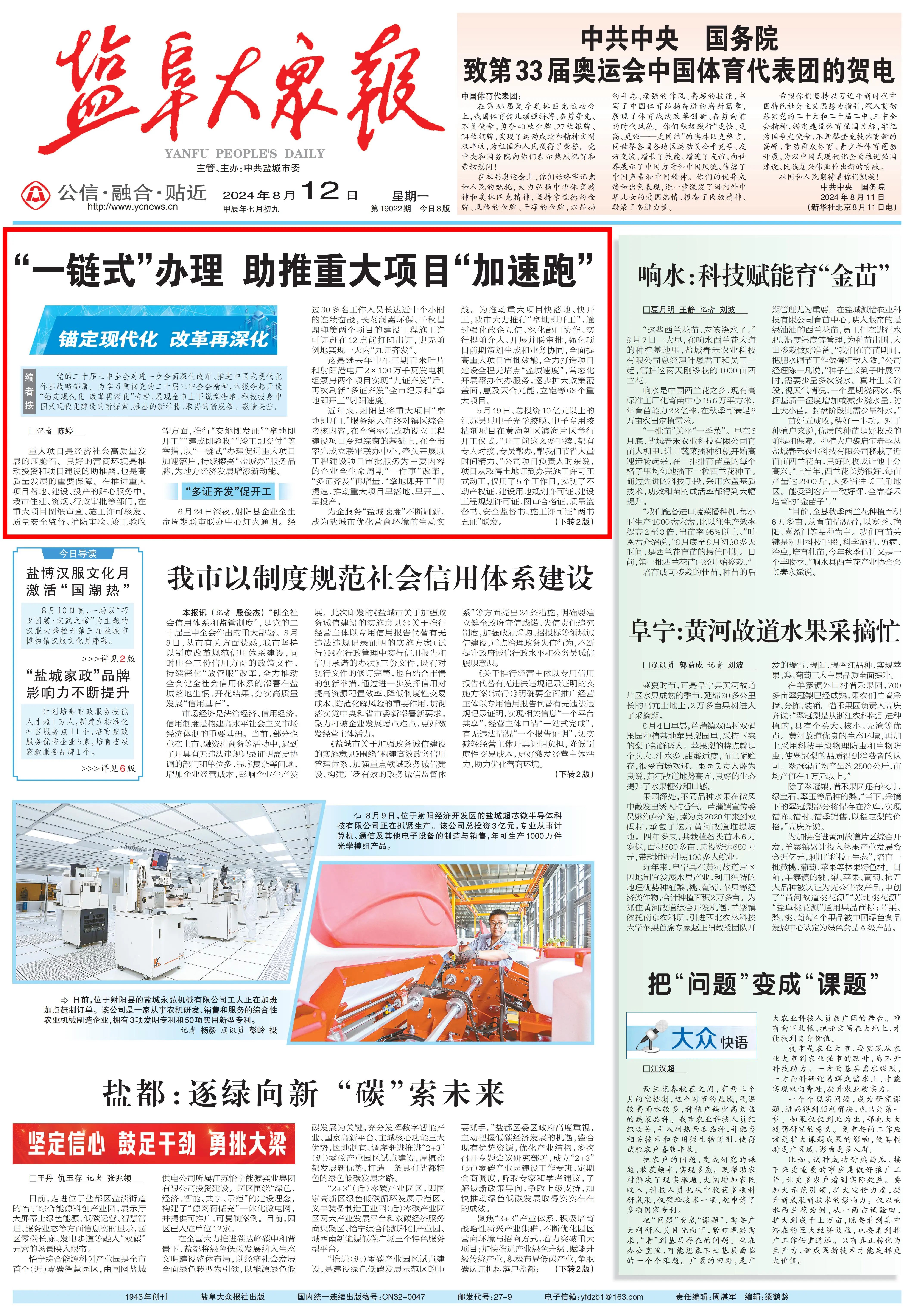一流的营商环境,离不开一流的政务服务。为助力企业轻装快跑,我市建立“签约—开工—投产”全周期为企服务机制,按照“企业有需求、政府快响应”的要求,全力当好服务企业“店小二”。近年来,天合光能、阿特斯、比亚迪、润阳等一批光伏领域、新能源汽车、锂电池的龙头企业相继在盐落地,1000多名项目帮办代办员活跃在项目现场,进行全流程服务。截至目前,年度计划新开工的315个重大项目全部按计划推进,审批用时平均压减30%。部分“极简审批”项目开工时间平均提前70天,工程建设项目全流程申报材料精简了34%,大大增强经济发展动力和企业获得感。
