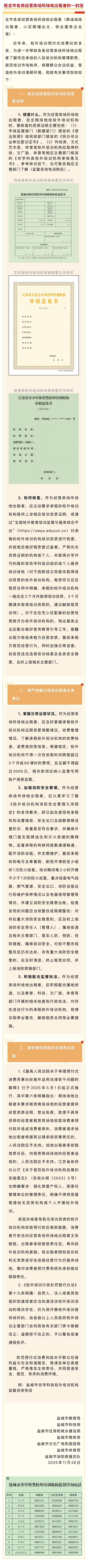 致全市各类经营类场所场地出租者的一封信