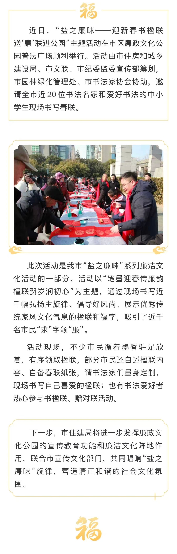 笔墨迎春传廉韵 楹联贺岁润初心——“盐之廉味”系列活动之送楹联进廉政公园