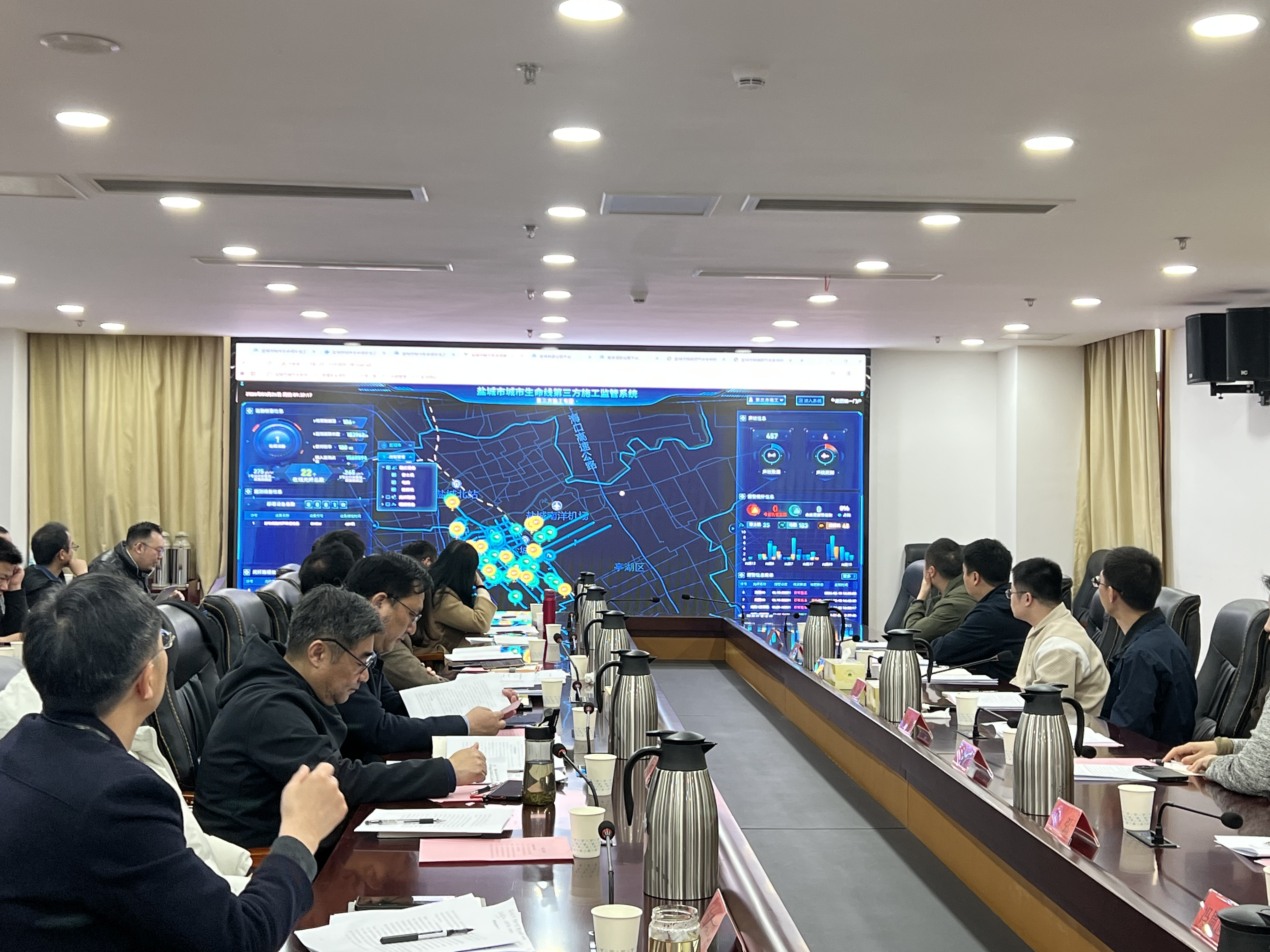 会上,市住建局介绍了我市城市生命线安全工程的项目背景、建设进展及下一步工作路数。市大数据集团围绕燃气爆炸、供水爆管、城市内涝、第三方施工破坏等专项,进行系统平台演示,直观展示了在日常巡检、风险监测、预警研判、联动处置等方面的实际应用成效。